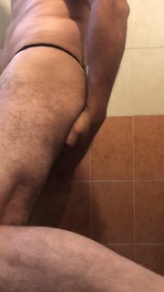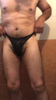 Wearing wife´s used black thong