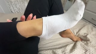 White Seamless Shiny Pantyhose and Nylon Gloves - Tan Pantyhose Masturbation and Fuck