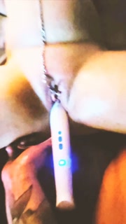 Wife strapped to bed with wand in pussy and toys in her ass