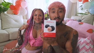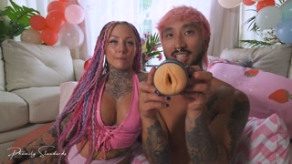 Wife Uses Realistic Duel Ended Stroker On Husband (Huge Cumshot)
