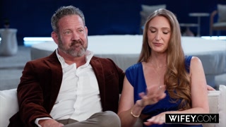 WIFEY Married MILF Brandi Johnson Gets Spit-Roasted And Creampied While Hubby Watches
