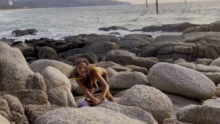 Wild Amazon Monika Foxxx plays with big dildos on the coast