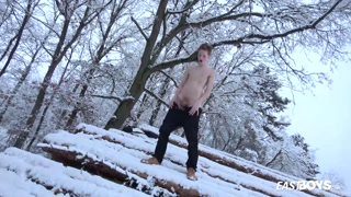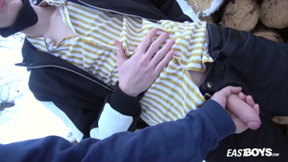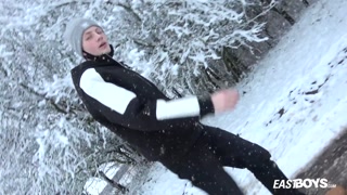 Wild handjob in car and winter in woods