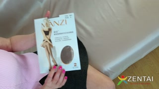 Woman dresses stockings on her bare butt
