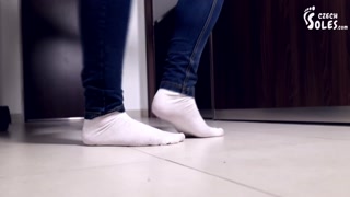 Worn white socks POV teasing with her BIG feet (POV socks, worn socks, foot worship POV, foot tease)
