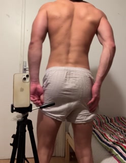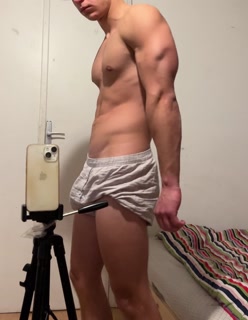 Young bodybuilder showing off his muscles in boxer shorts