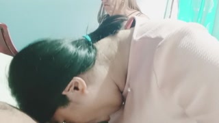 Young inexperienced girl sucking cock next to mature 70-year-old whore