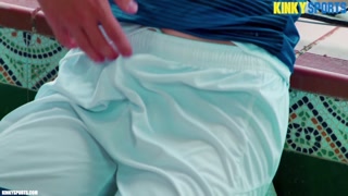 Young stud with a monstrous XXL cock dominates his submissive in sportswear.