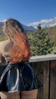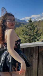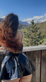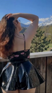 Young student shows off her charms against the backdrop of mountains