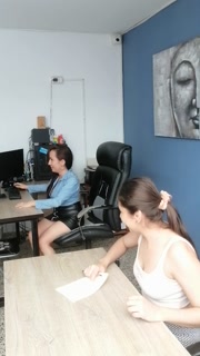 co-worker seduces me in the office, we touch each other and I lick her pussy