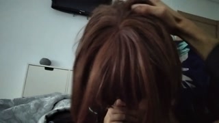 College girl with natural tits sucks, and gets her roommate's sperm